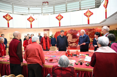 春節(jié)前夕,中共中央總書記、國家主席、中央軍委主席習(xí)近平等黨和國家領(lǐng)導(dǎo)人分別看望或委托有關(guān)方面負(fù)責(zé)同志看望了胡錦濤、朱镕基、李瑞環(huán)、溫家寶、賈慶林、張德江、俞正聲、栗戰(zhàn)書、汪洋、宋平、李嵐清、曾慶紅、吳官正、李長(zhǎng)春、羅干、賀國強(qiáng)、劉云山、王岐山、張高麗和田紀(jì)云、遲浩田、王樂泉、王兆國、回良玉、劉淇、吳儀、曹剛川、曾培炎、王剛、劉延?xùn)|、李源潮、馬凱、孫春蘭、李建國、范長(zhǎng)龍、孟建柱、郭金龍、王晨、劉鶴、楊潔篪、楊曉渡、陳全國、郭聲琨、王漢斌、何勇、杜青林、趙洪祝、尤權(quán)、李鐵映、許嘉璐、蔣正華、顧秀蓮、盛華仁、路甬祥、華建敏、陳至立、司馬義·鐵力瓦爾地、蔣樹聲、王勝俊、陳昌智、嚴(yán)雋琪、張平、向巴平措、張寶文、曹建明、張春賢、吉炳軒、艾力更·依明巴海、萬鄂湘、陳竺、白瑪赤林、唐家璇、戴秉國、常萬全、趙克志、韓杼濱、賈春旺、宋健、胡啟立、王忠禹、李貴鮮、郝建秀、徐匡迪、張懷西、李蒙、廖暉、白立忱、陳奎元、阿不來提·阿不都熱西提、李兆焯、黃孟復(fù)、張梅穎、張榕明、錢運(yùn)錄、孫家正、李金華、鄭萬通、鄧樸方、厲無畏、陳宗興、王志珍、韓啟德、林文漪、羅富和、李海峰、陳元、周小川、王家瑞、齊續(xù)春、馬培華、劉曉峰、王欽敏、張慶黎、劉奇葆、董建華、萬鋼、盧展工、王正偉、馬飚、陳曉光、楊傳堂、李斌、汪永清、辜勝阻、劉新成等老同志,向他們致以誠摯的節(jié)日問候,衷心祝愿他們新春愉快、健康長(zhǎng)壽。