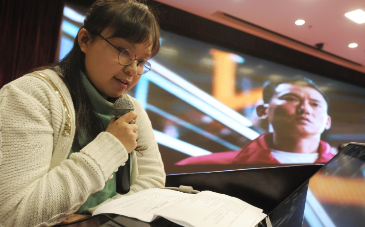 “蘑菇云騰空而起,中國(guó)第一顆原子彈爆炸成功。高遠(yuǎn)看向天空,臉上露出了欣慰和感動(dòng)的笑容……”送別觀影的盲人朋友,武漢市青山區(qū)新溝橋街道蔣家墩社區(qū)干事杜誠(chéng)誠(chéng)旋即投入下一部電影的解說(shuō)稿撰寫。