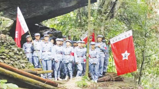 在鹿邑縣黨史展覽館的第一展廳里,懸掛著一幅中國工農紅軍飛奪瀘定橋時的壯烈畫展。