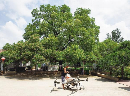 專業(yè)技術(shù)人員為植保無人機(jī)添加農(nóng)藥。鄲城縣寧平鎮(zhèn)擁有多株百年以上樹齡的古樹,這些“綠色活化石”承載著當(dāng)?shù)氐臍v史記憶。