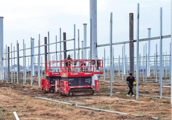 11月26日,淮陽(yáng)區(qū)四通鎮(zhèn)時(shí)莊村的新能源高效現(xiàn)代農(nóng)業(yè)產(chǎn)業(yè)園建設(shè)現(xiàn)場(chǎng),工人們正緊張施工。