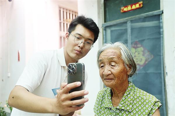 在淮陽區(qū)王店街道祝寨村,返鄉(xiāng)大學生周宏領為老人完善身份信息。近日,淮陽區(qū)開展80歲以上老人津貼系統(tǒng)信息更新工作,為確保政策精準落實,老人需提供最新身份信息。