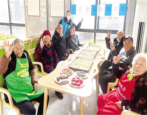 12月20日,在淮陽(yáng)區(qū)第一養(yǎng)老服務(wù)中心,生活在這里的老人們和社工包完餃子后露出開(kāi)心的笑容。