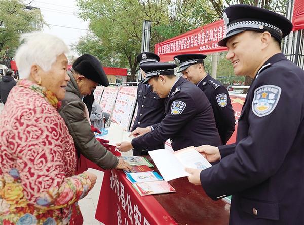 民警向群眾發(fā)放宣傳資料。2024年12月1日~12月7日是第七個“憲法宣傳周”。為大力弘揚憲法精神,營造崇尚憲法、學習憲法、宣傳憲法、遵守憲法、維護憲法的濃厚氛圍,連日來,扶溝縣公安局積極組織民警到大程文化廣場開展集中宣傳活動。