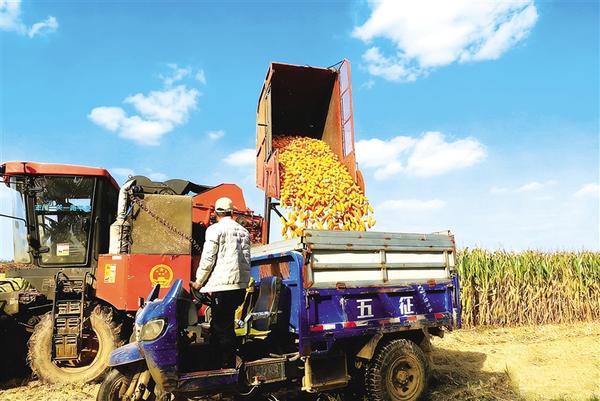 10月14日,扶溝縣大李莊鄉(xiāng)常崗村村民抓住天氣晴好的短暫時機(jī)搶收玉米。