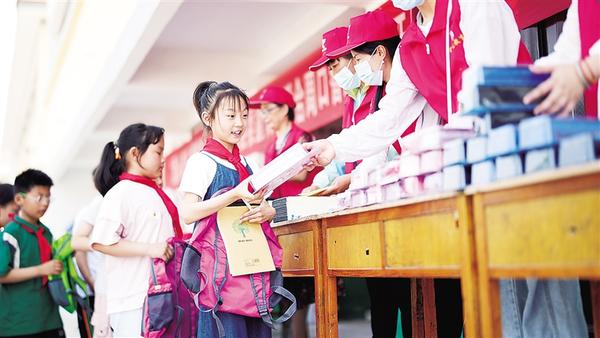 5月22日,扶溝縣江村鎮(zhèn)張龐小學(xué)的學(xué)生領(lǐng)到“六一”禮物?!傲弧眱和?jié)前夕,扶溝縣委宣傳部聯(lián)合我市一家教育公司走進(jìn)扶溝縣江村鎮(zhèn)張龐小學(xué),開展“愛心牽手 情暖童心”迎“六一”愛心捐贈(zèng)活動(dòng),為該校50名留守兒童送去價(jià)值4600元的書包、筆、本、文具盒等物品及節(jié)日的祝福。