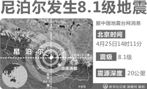 據(jù)新華社北京4月26日電 綜合新華社記者報(bào)道:25日發(fā)生在尼泊爾中部的強(qiáng)烈地震已經(jīng)造成尼境內(nèi)至少1805人遇難,另有4718人受傷。中國西藏、印度、孟加拉國、不丹等地均出現(xiàn)人員傷亡。中國政府正在組織緊急救援物資,將盡快運(yùn)抵尼泊爾災(zāi)區(qū),中國國際救援隊(duì)已于26日清晨啟程赴尼泊爾開展災(zāi)后救援工作。