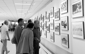 市老年人體育詩書畫攝影展迎來了眾多參觀者。(記者 王映 攝)