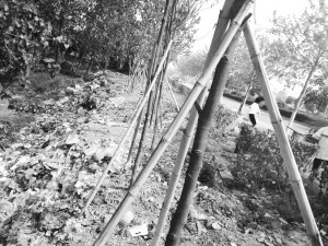上圖 負責清掃周口大道段的環(huán)衛(wèi)工把垃圾倒在周口大道路邊的河溝中(幼兒師范學(xué)校北側(cè)100米路西),而距此不遠的嵩山路口(周師北墻外)就有一個垃圾中轉(zhuǎn)站。