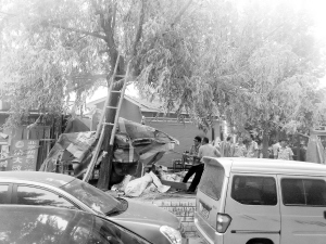 ②出店占道經(jīng)營(yíng)的棚子被強(qiáng)制拆除。