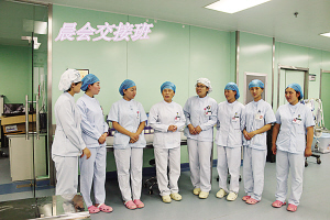 當(dāng)然,護(hù)理工作并非一帆風(fēng)順。眾所周知,ICU收治的都是重癥患者,患者大多數(shù)都有精神障礙,譫妄、昏迷、煩躁不安等狀況很常見,這就需要護(hù)士們充滿耐心和愛心。張衛(wèi)華以實(shí)際行動(dòng)詮釋人間大愛。2014年8月,科室里來了一名Ⅱ級(jí)肝性腦病的男性患者,已經(jīng)精神錯(cuò)亂且不認(rèn)人,行為非常危險(xiǎn)。由于該病不能使用鎮(zhèn)靜藥物,當(dāng)責(zé)任護(hù)士靠近患者時(shí),患者拿起床頭柜上的一個(gè)玻璃瓶向護(hù)士砸去。作為護(hù)士長的張衛(wèi)華見此情景,臨危不懼,用自己的身軀保護(hù)責(zé)任護(hù)士。只聽見啪的一聲,鮮血順著她的臉頰流了下來,可她還是慢慢走向那名患者,輕聲向他解釋情況以安撫其情緒?;颊叩那榫w漸漸地穩(wěn)定下來,她才去處理傷口,并輕松地說:“只要沒傷著病人就好?!庇幸淮危剖依飦砹艘幻墓W≡旱睦先?,老人的孩子都在外地,得知老人生病住院也沒趕回來照顧,甚至連一句問候都沒有。老人除了要忍受著病痛的折磨,還要忍受對(duì)孩子們的思念。張衛(wèi)華見此情景,非常心疼,為安慰老人,上班期間她都會(huì)去陪老人聊天,哄老人開心。老人吵著不舒服的時(shí)候,張衛(wèi)華用藥緩解,同時(shí)耐心安撫老人。晚上老人因?yàn)楹⒆拥氖虑椋瑫?huì)像一個(gè)小孩兒一樣哭泣不止,張衛(wèi)華心疼地陪在老人身邊,一遍又一遍地安慰說:“別害怕,我在您身邊,我就是您的女兒。”