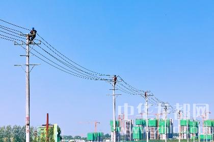 8月25日,在周口野生動物世界第二電源工程項目施工現(xiàn)場,30多名電力施工人員正在對40基桿塔引線進行校正、綁扎、緊線作業(yè)。