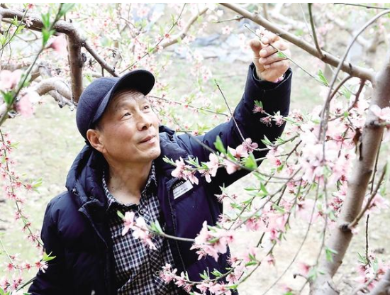 2月25日,扶溝縣金果農(nóng)千畝果園的溫室大棚內(nèi)桃花綻放,果農(nóng)正忙于疏花疏枝,加強春管爭豐收。