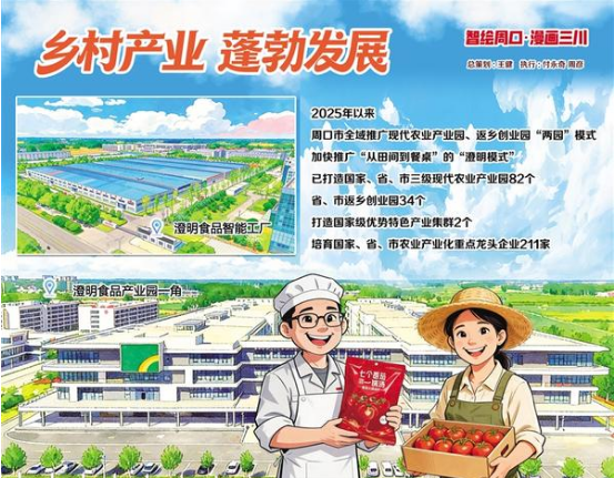 2025年以來,周口市統(tǒng)籌發(fā)展農(nóng)產(chǎn)品初加工、精深加工和綜合利用加工,全域推廣現(xiàn)代農(nóng)業(yè)產(chǎn)業(yè)園、返鄉(xiāng)創(chuàng)業(yè)園“兩園”模式,加快推廣“從田間到餐桌”的“澄明模式”,不斷提升鄉(xiāng)村產(chǎn)業(yè)發(fā)展質(zhì)效,已打造國家、省、市三級現(xiàn)代農(nóng)業(yè)產(chǎn)業(yè)園82個,省、市返鄉(xiāng)創(chuàng)業(yè)園34個,打造國家級優(yōu)勢特色產(chǎn)業(yè)集群2個,培育國家、省、市農(nóng)業(yè)產(chǎn)業(yè)化重點龍頭企業(yè)211家。