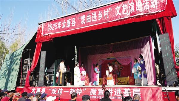 初冬時(shí)節(jié),陽(yáng)光和煦。近日,太康縣道情劇團(tuán)開(kāi)展送戲下鄉(xiāng)活動(dòng),在轉(zhuǎn)樓鎮(zhèn)周莊村為群眾上演了《珍珠塔》《王金豆借糧》等經(jīng)典道情劇目,豐富了群眾的精神文化生活。